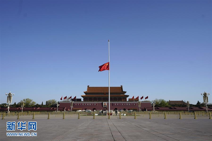 4月4日,北京天安門廣場降下半旗,表達(dá)對(duì)抗擊新冠肺炎疫情斗爭犧牲烈士和逝世同胞的深切哀悼。新華社記者 邢廣利 攝