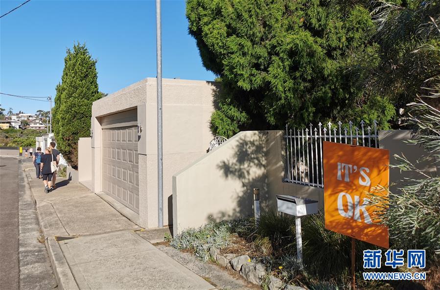 這是4月4日在澳大利亞悉尼費(fèi)爾萊特社區(qū)拍攝的標(biāo)語(yǔ)牌。新華社記者白雪飛攝