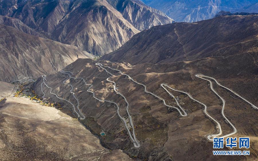 這是“怒江72拐”,該處位于西藏自治區(qū)昌都市八宿縣境內(nèi),是川藏線上一段艱險與美景并存的山路(10月23日無人機(jī)拍攝)。全長2000多公里的川藏公路,從成都開始,一路向西到終點拉薩,在橫斷山脈、喜馬拉雅山脈和念青唐古拉山脈間蜿蜒盤旋,因海拔落差大,彎道眾多,形成天路奇觀。川藏公路1954年12月25日通車,65年來,國家對川藏公路進(jìn)行了大規(guī)模改造升級,建設(shè)了眾多橋梁和隧道,行車條件得到明顯改善。新華社記者江宏景攝
