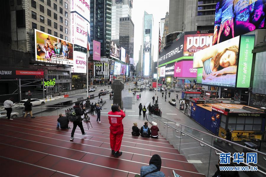 3月19日,人們在冷清的美國紐約曼哈頓時報廣場上參觀。美國約翰斯·霍普金斯大學(xué)發(fā)布的實時統(tǒng)計數(shù)據(jù)顯示,截至美國東部時間19日17時30分(北京時間20日5時30分),美國新冠肺炎確診病例累計13060例,死亡175例。受新冠肺炎疫情影響,紐約等疫情嚴(yán)重的地區(qū)執(zhí)行多項減少人口聚集的措施,昔日的鬧市如今已冷冷清清。新華社記者王迎攝