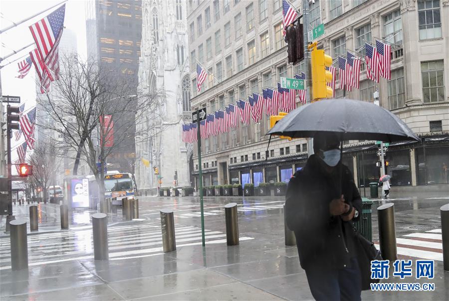 4月1日,行人走在美國紐約街頭。新華社記者王迎攝