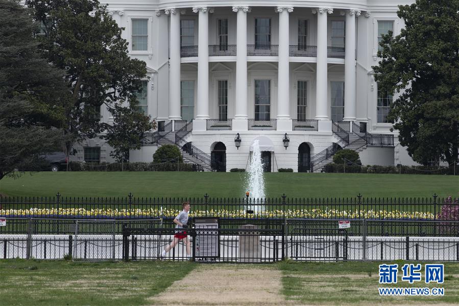 4月1日,在美國首都華盛頓,一名男子在白宮附近跑步。新華社記者劉杰攝