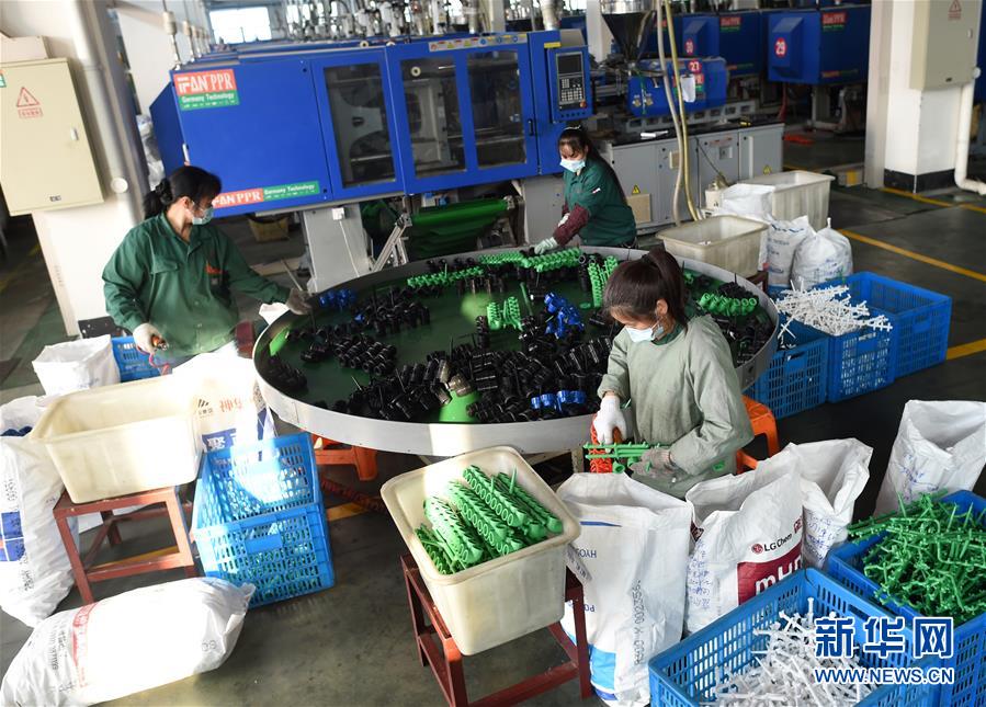 4月13日,員工在位于店口鎮(zhèn)的諸暨市風(fēng)帆管業(yè)有限公司注塑車間分揀自動(dòng)化生產(chǎn)線上的管件。新華社記者韓傳號(hào)攝
