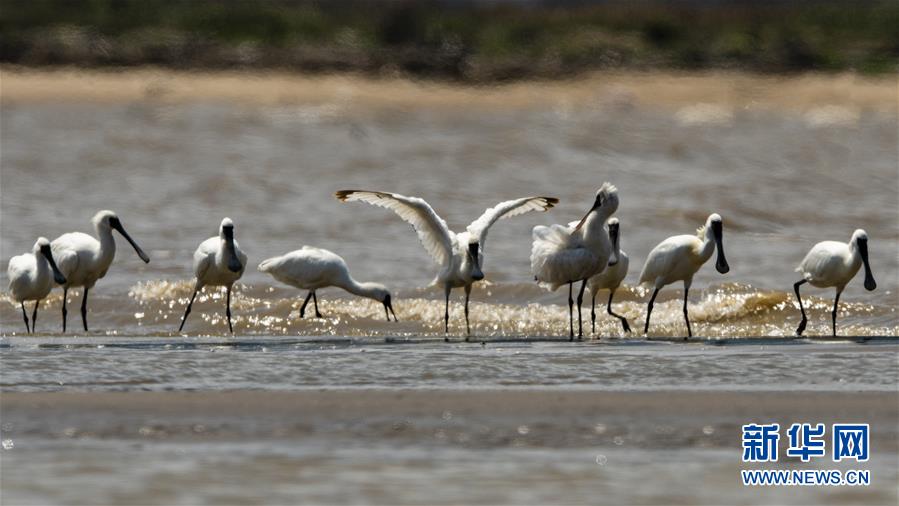 這是在福建閩江口濕地拍攝的黑臉琵鷺(4月12日攝)。