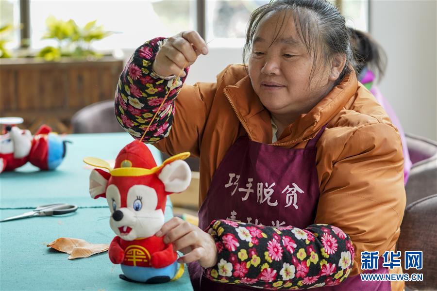 4月8日,在重慶石柱中益鄉(xiāng)巾幗扶貧工坊,一名當(dāng)?shù)貗D女在縫制文創(chuàng)產(chǎn)品。近年來(lái),重慶市石柱土家族自治縣中益鄉(xiāng)在重慶市婦聯(lián)的幫助下,以當(dāng)?shù)胤沁z傳統(tǒng)技藝作為結(jié)合點(diǎn),把扶貧與扶志、扶智相結(jié)合,通過(guò)引進(jìn)外來(lái)文創(chuàng)企業(yè)對(duì)留守婦女、貧困及殘疾人群進(jìn)行刺繡培訓(xùn),設(shè)立巾幗扶貧工坊等多種形式,幫助當(dāng)?shù)卮迕駥?shí)現(xiàn)就業(yè)增收。據(jù)介紹,巾幗扶貧工坊運(yùn)行以來(lái),為當(dāng)?shù)仃懤m(xù)開(kāi)發(fā)出土家族布老虎、手提袋、餐墊繡邊、創(chuàng)意相框等一系列文創(chuàng)產(chǎn)品,幫助參加巾幗扶貧工坊的留守婦女和貧困村民實(shí)現(xiàn)月均增收近千元。新華社記者劉潺攝