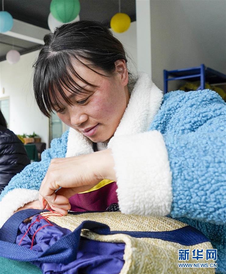 4月8日,在重慶石柱中益鄉(xiāng)巾幗扶貧工坊,當(dāng)?shù)貗D女在縫制土家族風(fēng)情手提袋。近年來,重慶市石柱土家族自治縣中益鄉(xiāng)在重慶市婦聯(lián)的幫助下,以當(dāng)?shù)胤沁z傳統(tǒng)技藝作為結(jié)合點(diǎn),把扶貧與扶志、扶智相結(jié)合,通過引進(jìn)外來文創(chuàng)企業(yè)對(duì)留守婦女、貧困及殘疾人群進(jìn)行刺繡培訓(xùn),設(shè)立巾幗扶貧工坊等多種形式,幫助當(dāng)?shù)卮迕駥?shí)現(xiàn)就業(yè)增收。據(jù)介紹,巾幗扶貧工坊運(yùn)行以來,為當(dāng)?shù)仃懤m(xù)開發(fā)出土家族布老虎、手提袋、餐墊繡邊、創(chuàng)意相框等一系列文創(chuàng)產(chǎn)品,幫助參加巾幗扶貧工坊的留守婦女和貧困村民實(shí)現(xiàn)月均增收近千元。新華社記者劉潺攝
