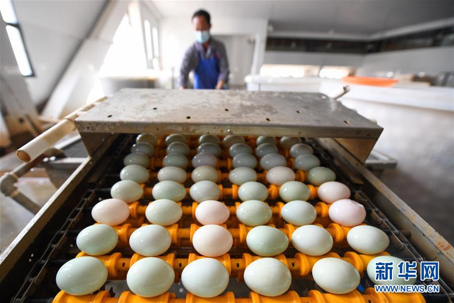 江蘇高郵鴨集團(tuán)的工作人員將腌制好的鴨蛋放到塑封包裝流水線上(4月15日攝)?!案哙]鴨蛋”是江蘇高郵的特色農(nóng)業(yè)名片。近年來,當(dāng)?shù)卦诹挤N繁育、生態(tài)養(yǎng)殖、產(chǎn)品加工等方面加大力度,推動(dòng)高郵鴨蛋品牌化建設(shè),讓小鴨蛋成為帶動(dòng)農(nóng)戶致富的大產(chǎn)業(yè)。2019年,高郵市共計(jì)生產(chǎn)熟制鴨蛋產(chǎn)品近11.2億枚,年產(chǎn)值近17.68億元。新華社記者李博攝