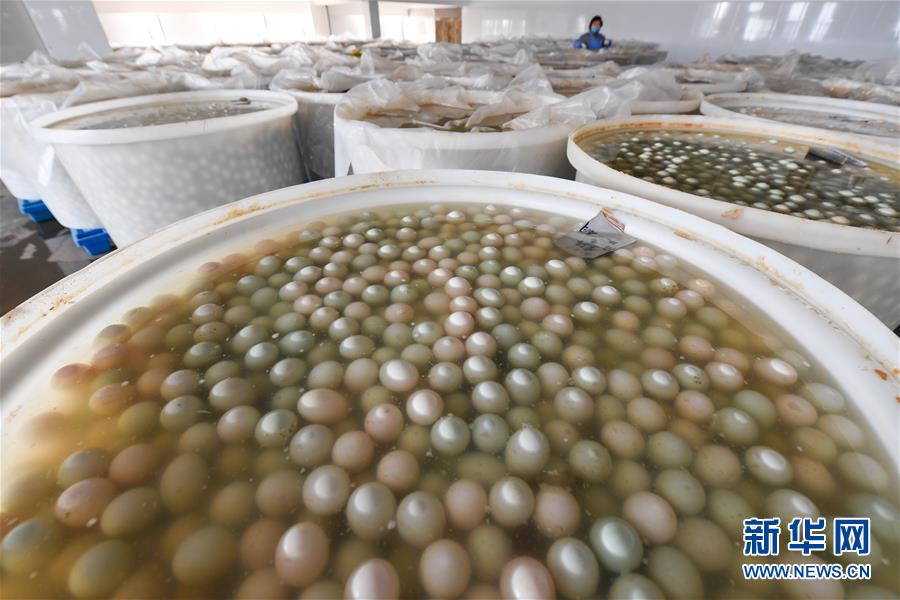 在江蘇高郵鴨集團(tuán)生產(chǎn)車間,腌制好的鴨蛋準(zhǔn)備進(jìn)行清洗包裝作業(yè)(4月15日攝)?!案哙]鴨蛋”是江蘇高郵的特色農(nóng)業(yè)名片。近年來,當(dāng)?shù)卦诹挤N繁育、生態(tài)養(yǎng)殖、產(chǎn)品加工等方面加大力度,推動(dòng)高郵鴨蛋品牌化建設(shè),讓小鴨蛋成為帶動(dòng)農(nóng)戶致富的大產(chǎn)業(yè)。2019年,高郵市共計(jì)生產(chǎn)熟制鴨蛋產(chǎn)品近11.2億枚,年產(chǎn)值近17.68億元。新華社記者李博攝