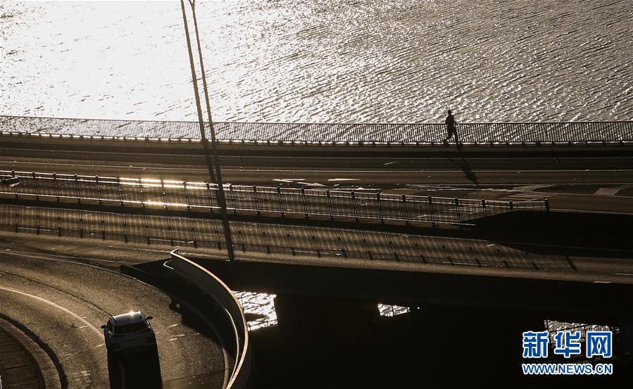 4月15日,在澳大利亞悉尼,一名市民在空曠的街道上跑步健身。新華社記者白雪飛攝