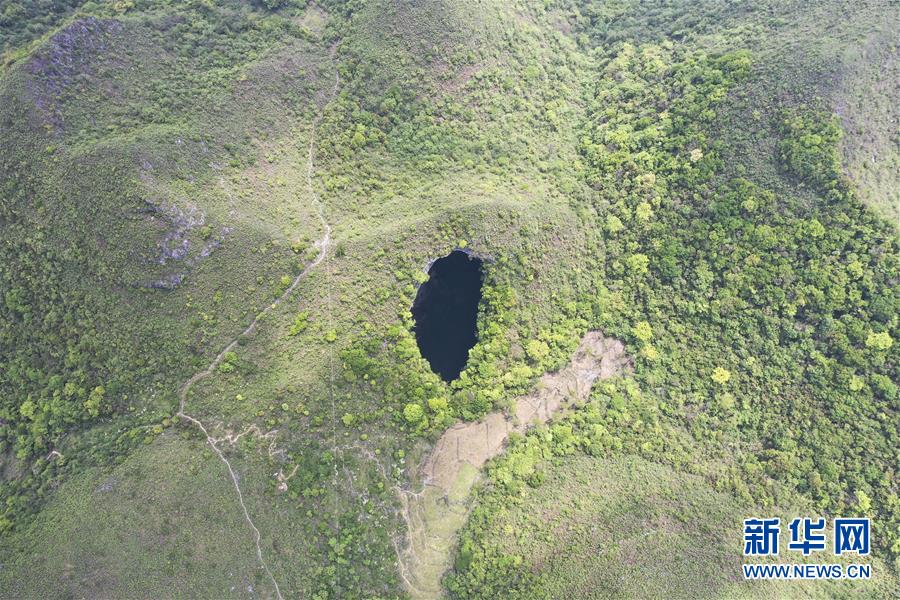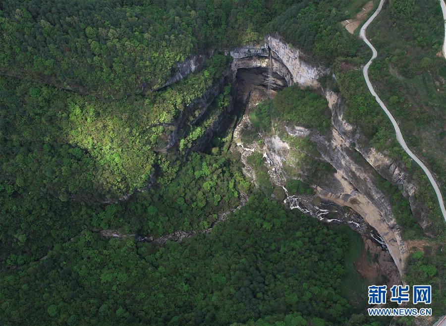 4月22日無人機拍攝的地洞河天坑。新華社記者張博文攝
