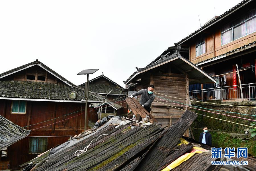 4月19日,貴州省從江縣加榜鄉(xiāng)加車(chē)村脫貧攻堅(jiān)指揮所的駐村干部幫助農(nóng)戶拆除廢棄圈舍。貴州省從江縣把人居環(huán)境整治作為脫貧攻堅(jiān)工作的一項(xiàng)重要舉措來(lái)抓,對(duì)鄉(xiāng)村規(guī)劃范圍內(nèi)長(zhǎng)期無(wú)人居住的危房、廢棄禾倉(cāng)、棚圈、柴草房和房前屋后的殘?jiān)珨啾诘冗M(jìn)行清理整治,進(jìn)行復(fù)墾復(fù)綠,同時(shí)開(kāi)展農(nóng)戶衛(wèi)生和村寨環(huán)境整治,做到鄉(xiāng)村環(huán)境干凈、衛(wèi)生、整潔,扮靚美麗鄉(xiāng)村。新華社記者楊文斌攝