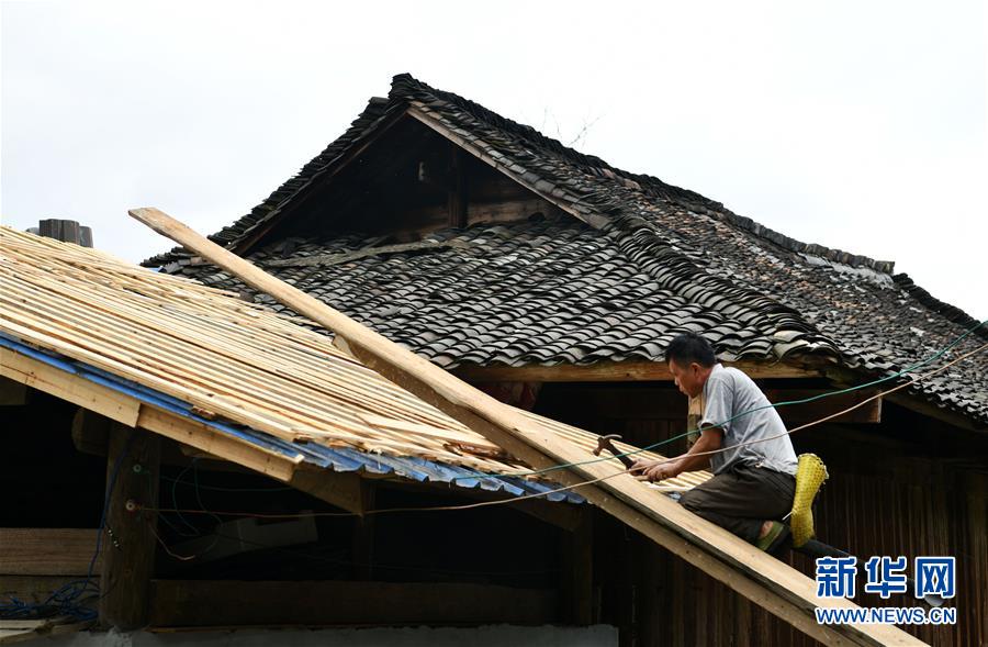 貴州省從江縣加榜鄉(xiāng)黨扭村村民在整治吊腳樓風(fēng)貌(4月16日攝)。貴州省從江縣把人居環(huán)境整治作為脫貧攻堅工作的一項(xiàng)重要舉措來抓,對鄉(xiāng)村規(guī)劃范圍內(nèi)長期無人居住的危房、廢棄禾倉、棚圈、柴草房和房前屋后的殘垣斷壁等進(jìn)行清理整治,進(jìn)行復(fù)墾復(fù)綠,同時開展農(nóng)戶衛(wèi)生和村寨環(huán)境整治,做到鄉(xiāng)村環(huán)境干凈、衛(wèi)生、整潔,扮靚美麗鄉(xiāng)村。新華社記者楊文斌攝