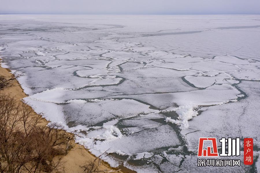 2020年4月18日,黑龍江雞西,谷雨節(jié)氣,中俄界湖興凱湖依然千里冰封。