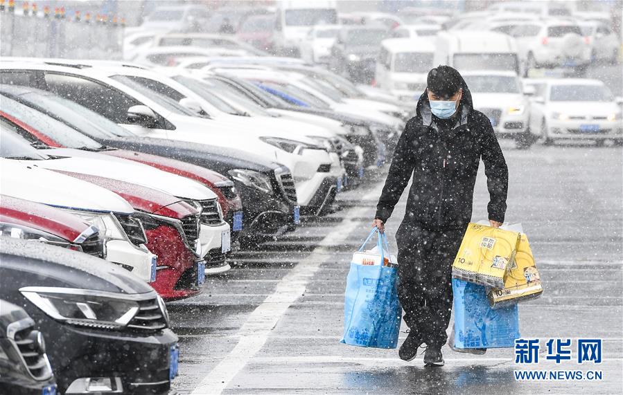 4月21日,長(zhǎng)春市民冒雪出行。當(dāng)日,吉林省多地迎來(lái)降雪天氣。新華社記者許暢攝