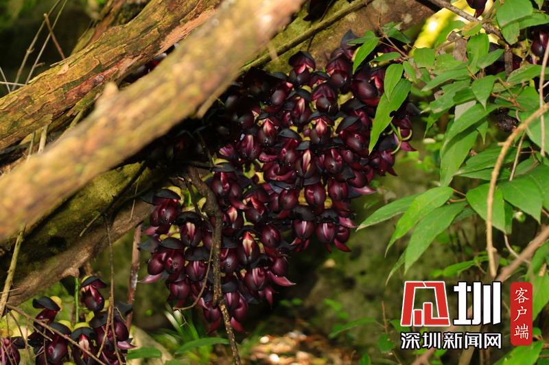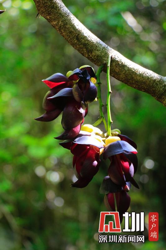 禾雀花序懸掛于悠長盤曲的老莖上,吊掛成串,每串二、三十朵,串串下垂。