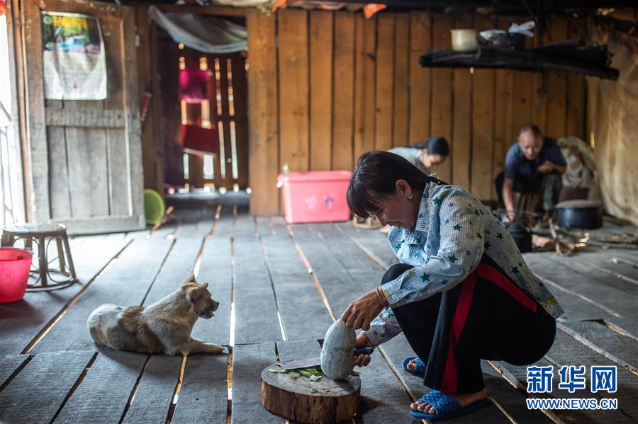 4月12日,在云南省勐海縣布朗山鄉(xiāng)曼囡村曼班三隊(duì),娜四在家切菜。新華社記者胡超攝