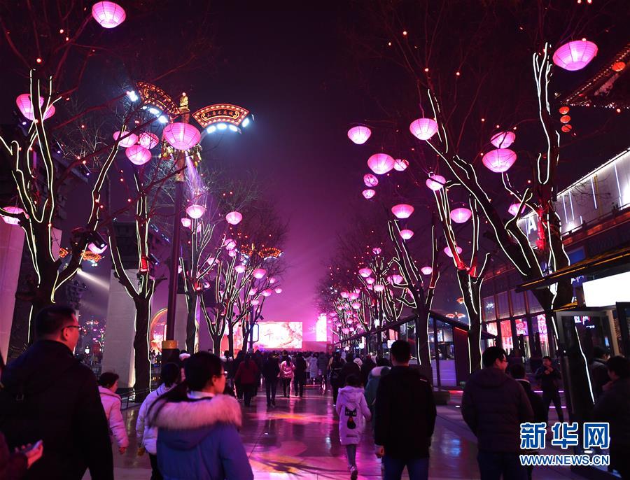 1月17日,游客在西安大唐不夜城步行街游覽。 新華社記者 張博文 攝
