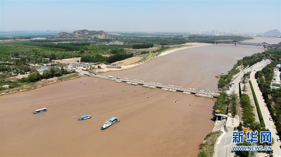 4月24日在山東濟(jì)南拍攝的黃河景色(無(wú)人機(jī)照片)。春暖花開(kāi)的時(shí)節(jié),濟(jì)南黃河兩岸春風(fēng)送綠,大河、綠植與城市構(gòu)成了一幅春的畫(huà)卷。新華社記者王凱攝