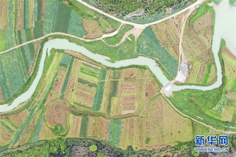 廣西隆安縣南圩鎮(zhèn)田園景色(4月23日攝,無(wú)人機(jī)照片)。新華社記者曹祎銘攝