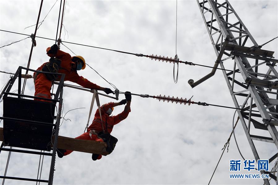 4月25日,在福建省寧德市屏南車站,施工人員開展接觸網(wǎng)調整作業(yè)。中鐵電氣化局集團上海公司推動衢寧鐵路福建段通信工程、信號工程、電力工程、電氣化工程各環(huán)節(jié)協(xié)同復工復產,目前來自河北、河南、四川等國內10個省的900多名員工返崗就業(yè)。衢寧鐵路北起浙江省衢州市,南至福建省寧德市,全長379.2公里。新華社記者彭張青攝