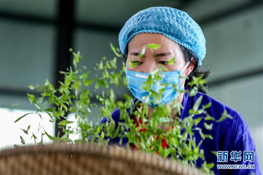 4月25日,工作人員在“扶貧茶園”內(nèi)篩選茶青。谷雨過后,在貴州省黔東南苗族侗族自治州丹寨縣“扶貧茶園”,茶農(nóng)搶抓農(nóng)時趕制春茶。丹寨縣創(chuàng)新產(chǎn)業(yè)扶貧模式,鼓勵社會公眾線上認(rèn)領(lǐng)茶園,再由茶園聘請當(dāng)?shù)刎毨魟?wù)工,為貧困戶創(chuàng)造茶園管理、采茶、制茶等就業(yè)機(jī)會,幫助貧困戶增收。今年以來,“扶貧茶園”已接受線上預(yù)訂600余畝,給當(dāng)?shù)?00余名村民提供了就業(yè)機(jī)會。新華社記者歐東衢攝