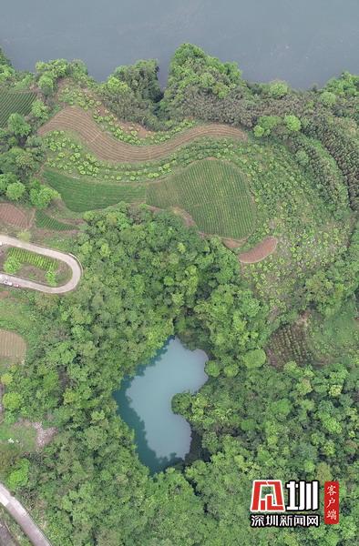 2020年4月24日,在湖南張家界市永定區(qū)“百里畫廊”茅巖河景區(qū)拍攝的“天坑心湖”。(無人機(jī)拍攝)