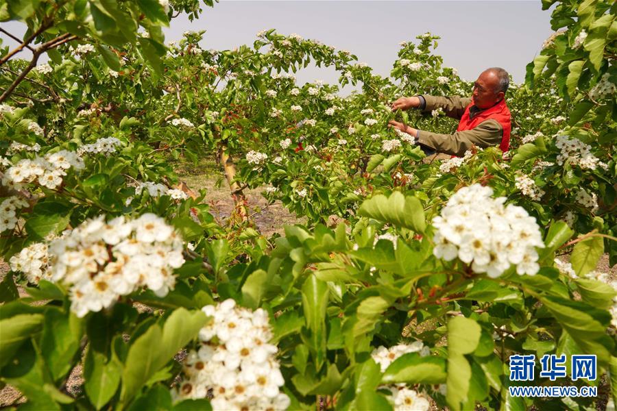 4月26日,農(nóng)民在河北省清河縣馬屯紅果種植專業(yè)合作社的山楂種植區(qū)內(nèi)為果樹疏花。4月下旬以來(lái),河北省清河縣2萬(wàn)余畝山楂樹競(jìng)相開花,成為一道亮麗的風(fēng)景線。清河縣年產(chǎn)山楂7.5萬(wàn)余噸,山楂種植已成為當(dāng)?shù)剞r(nóng)民的重要增收途徑。新華社記者牟宇攝
