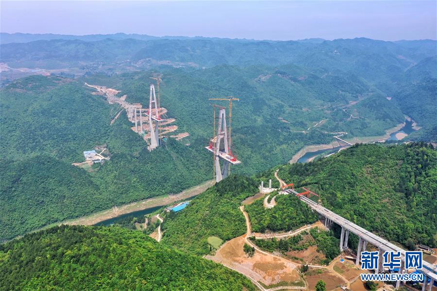 這是建設中的遵余高速湘江大橋(4月26日攝,無人機照片)。近日,由中鐵廣州局承建的貴州遵余高速湘江大橋工程在做好疫情防控的同時,全力恢復生產(chǎn)建設。目前工程進展順利,正在進行主橋鋼梁架設,預計將于8月底合龍。據(jù)了解,遵余高速湘江大橋橋梁全長1700余米,主跨560米。新華社記者劉續(xù)攝