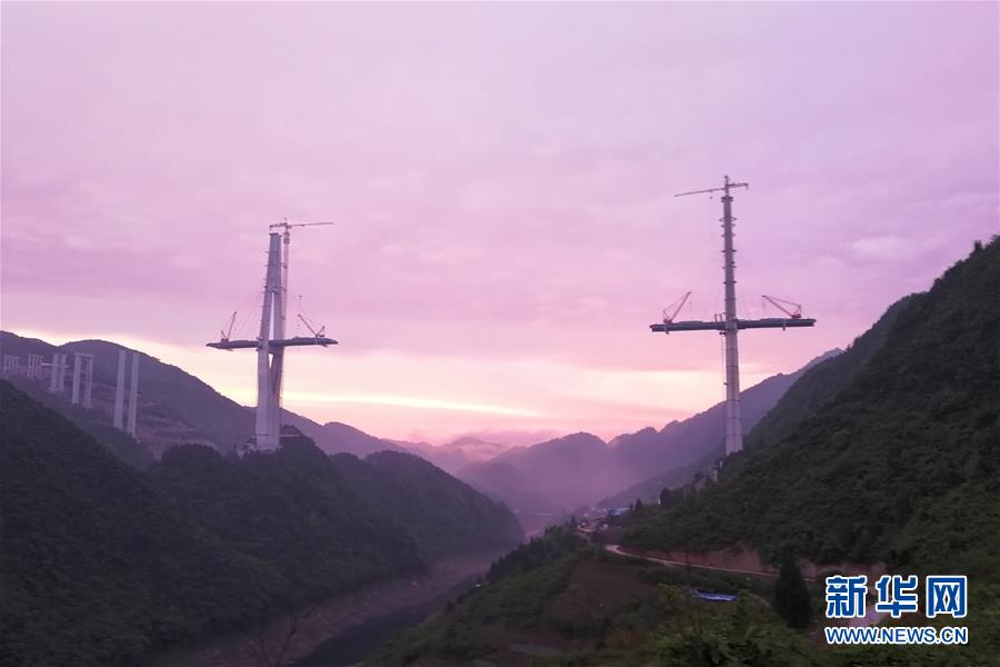 這是建設(shè)中的遵余高速湘江大橋(4月25日手機(jī)拍攝)。近日,由中鐵廣州局承建的貴州遵余高速湘江大橋工程在做好疫情防控的同時(shí),全力恢復(fù)生產(chǎn)建設(shè)。目前工程進(jìn)展順利,正在進(jìn)行主橋鋼梁架設(shè),預(yù)計(jì)將于8月底合龍。據(jù)了解,遵余高速湘江大橋橋梁全長1700余米,主跨560米。新華社記者劉續(xù)攝