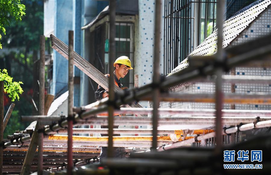 4月26日,工人在渝中區(qū)大溪溝街道雙鋼路社區(qū)改造提升項目施工現(xiàn)場作業(yè)。近段時間以來,重慶市渝中區(qū)大溪溝街道加快推進(jìn)轄區(qū)內(nèi)老舊小區(qū)改造提升工作,從環(huán)境衛(wèi)生、房屋管理及養(yǎng)護(hù)、安防及車輛管理、綠化管理等方面進(jìn)行綜合改造提升,以增強社區(qū)居民的幸福感、獲得感、安全感。新華社記者王全超攝