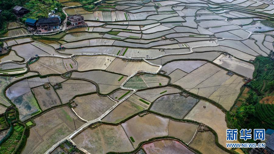 廣西三江侗族自治縣良口鄉(xiāng)南寨村村民在田間種植早稻(4月25日無人機照片)。目前,廣西柳州市三江侗族自治縣群眾抓住時令,搶種早稻,培育靈芝和果蔬等經(jīng)濟作物,全力發(fā)展生產(chǎn),決戰(zhàn)脫貧攻堅。三江侗族自治縣地處滇黔桂石漠化片區(qū),是國家扶貧開發(fā)工作重點縣。新華社記者張愛林攝
