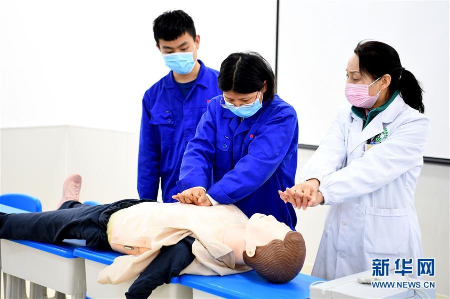 4月27日,常青街道竹西社區(qū)邀請(qǐng)醫(yī)護(hù)人員(右一)為轄區(qū)企業(yè)工人講解急救知識(shí)。當(dāng)日,安徽省合肥市包河區(qū)常青街道開展健康講座、職業(yè)病防護(hù)宣傳等系列活動(dòng),提高勞動(dòng)者的自我防護(hù)意識(shí)和能力,迎接“五一”國(guó)際勞動(dòng)節(jié)。新華社記者劉軍喜攝