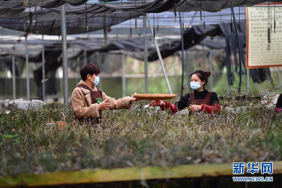 在廣西融水苗族自治縣七彩農(nóng)場(chǎng),梁壬梅(左)和脫貧戶(hù)何春瓊在采收石斛(3月13日攝)。