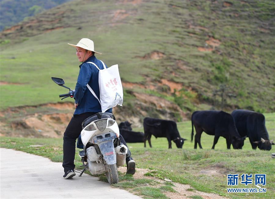 李義成騎車(chē)前往堯告村高山天然牧場(chǎng),準(zhǔn)備了解養(yǎng)牛場(chǎng)的養(yǎng)殖情況(4月26日攝)。新華社記者黃孝邦攝