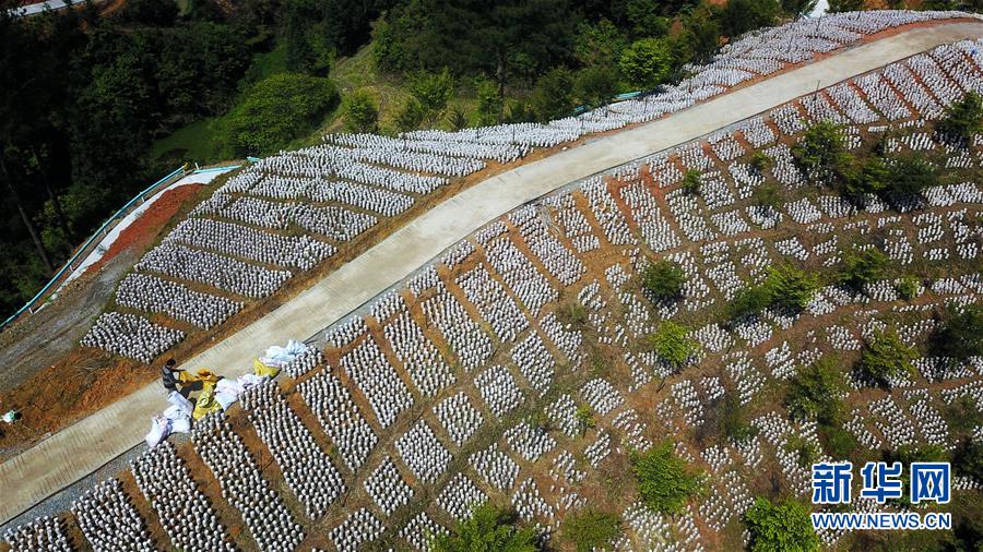 這是4月26日拍攝的劍河縣關(guān)口萬畝生態(tài)農(nóng)業(yè)示范基地培育的木耳(無人機照片)。近年來,貴州省黔東南苗族侗族自治州劍河縣充分利用林下土地培育木耳,既不耽誤林木生長,又發(fā)展了食用菌產(chǎn)業(yè)。目前,該縣采取“龍頭企業(yè)+合作社+貧困戶”的合作模式,大力推廣林下木耳種植,帶動農(nóng)民增收。新華社記者楊文斌攝