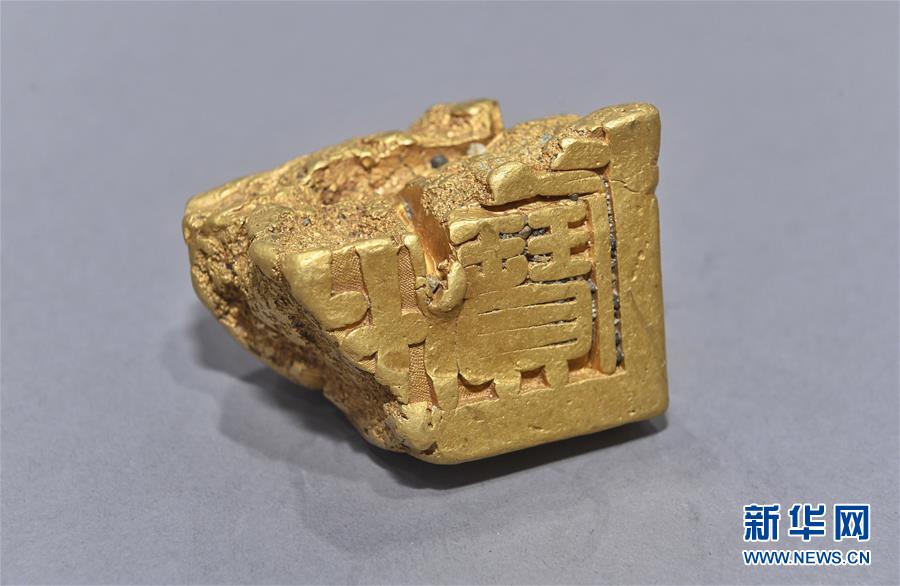 這是發(fā)掘出水的“蜀世子寶”金印局部(4月15日攝)。新華社記者劉坤攝