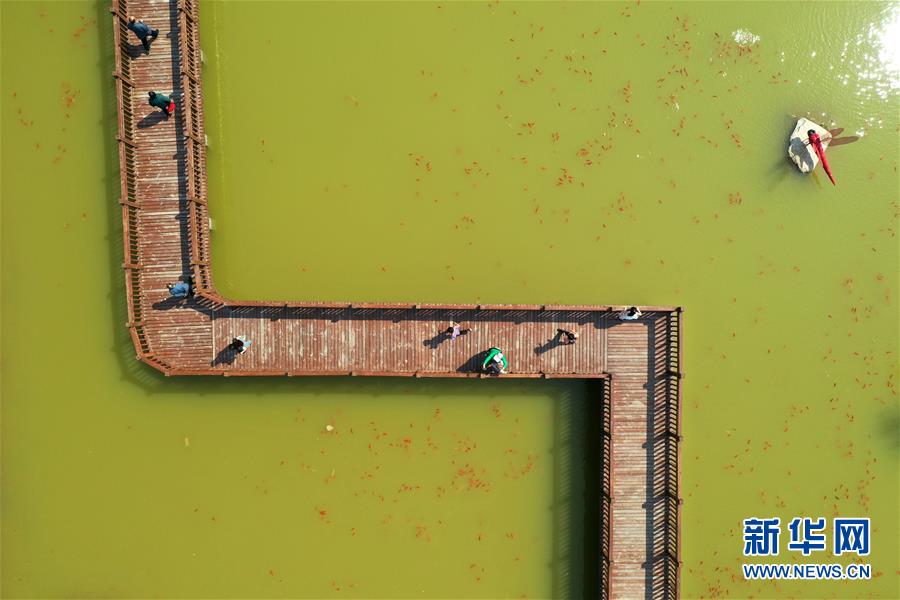 5月1日,游客在河南省鶴壁市淇濱區(qū)鉅橋鎮(zhèn)崗坡村棧橋上游玩(無(wú)人機(jī)照片)。河南省鶴壁市淇濱區(qū)鉅橋鎮(zhèn)崗坡村是一座有著千年歷史的古村落。近年來(lái),淇濱區(qū)深入踐行鄉(xiāng)村振興戰(zhàn)略,打造以崗坡村為中心的龍崗鄉(xiāng)村振興示范帶,采取“村集體土地入股、資金入股、年底分紅”的運(yùn)作模式,實(shí)現(xiàn)了“資源變資產(chǎn)、資金變股金、村民變股民”的“三變”。農(nóng)戶(hù)通過(guò)到龍崗鄉(xiāng)村振興示范園打工等方式,實(shí)現(xiàn)就近就業(yè),每人每月至少有2500元至3000元的保底工資。 新華社記者馮大鵬攝
