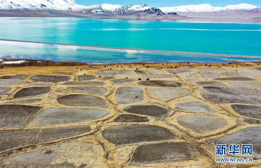 這是4月30日拍攝的當(dāng)穹錯(cuò)湖畔的農(nóng)田(無人機(jī)照片)。當(dāng)穹錯(cuò)地處西藏那曲市尼瑪縣南部,湖面海拔4475米。暮春時(shí)節(jié),湖水碧藍(lán)清亮,讓人仿佛置身仙境。新華社記者田金文攝