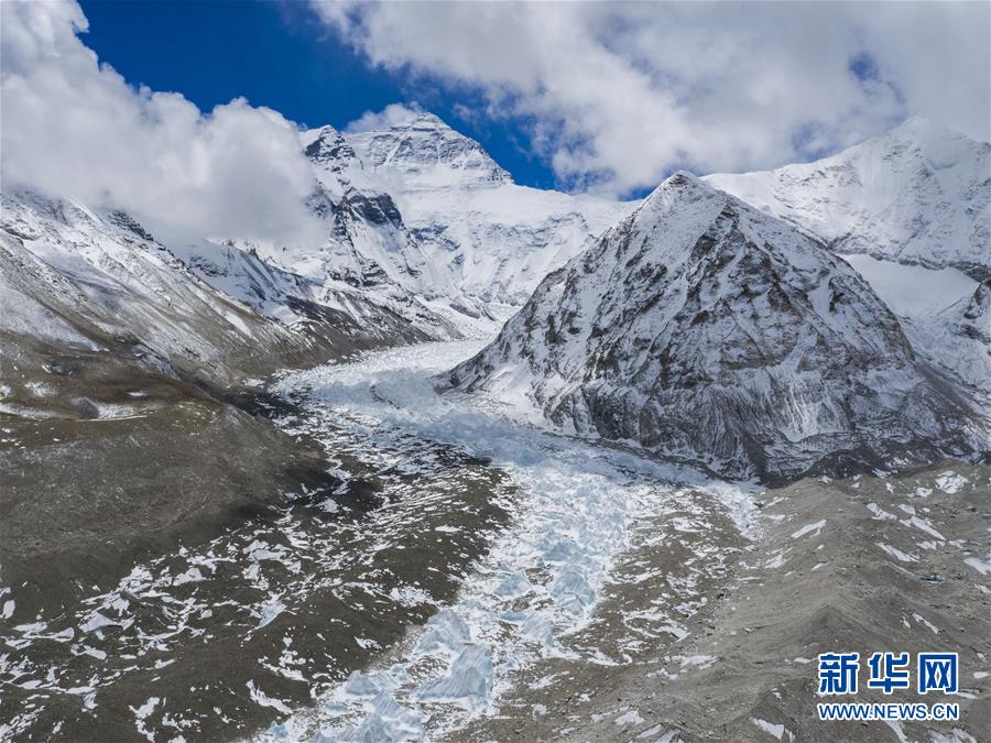 位于珠穆朗瑪峰腳下海拔5400米左右的中絨布冰川(4月30日攝,無人機照片)。位于珠穆朗瑪峰腳下海拔5400米左右的中絨布冰川,巍峨壯觀,冰塔林托起世界最高峰,讓人嘆為觀止。新華社記者普布扎西攝