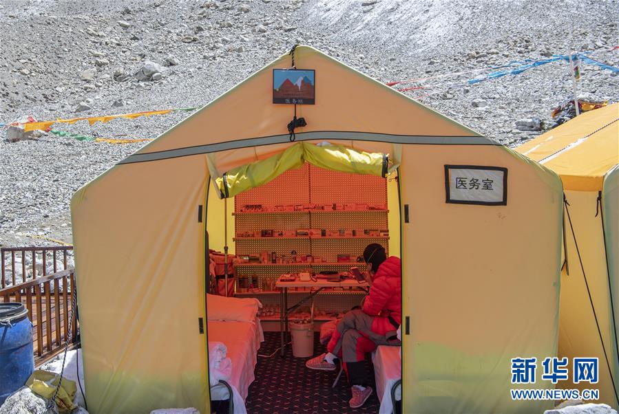 珠峰大本營(yíng)里的醫(yī)務(wù)室(5月3日攝)。新華社記者孫非攝