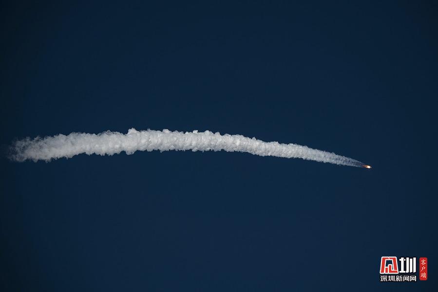 2020年5月5日18時(shí),長征五號(hào)B運(yùn)載火箭在文昌發(fā)射場點(diǎn)火升空,這是火箭進(jìn)入大氣層后,天空留下的煙霧痕跡。