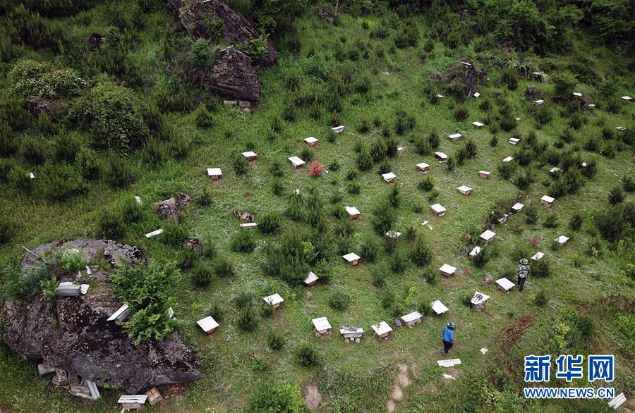 2020年5月3日,湖北省襄陽市,在南漳三道河水庫小島上,養(yǎng)蜂人趙德海養(yǎng)了200多箱土蜂。