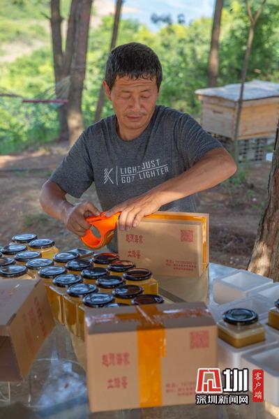 2020年5月3日,湖北省襄陽市,在南漳三道河水庫小島上,小島養(yǎng)蜂人趙德海正在打包蜜蜂,準(zhǔn)備發(fā)貨。