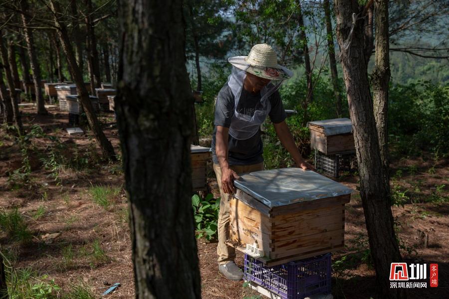 2020年5月3日,湖北省襄陽市,在南漳三道河水庫小島上,小島養(yǎng)蜂人趙德海每天要巡視蜂箱,查看蜂箱的蜜蜂密集度和蜜蜂繁殖情況,及時(shí)調(diào)整,才能避免蜜蜂受損。
