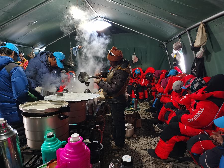 登山隊(duì)連同修路隊(duì)海拔6500米上召開協(xié)調(diào)會(huì)議