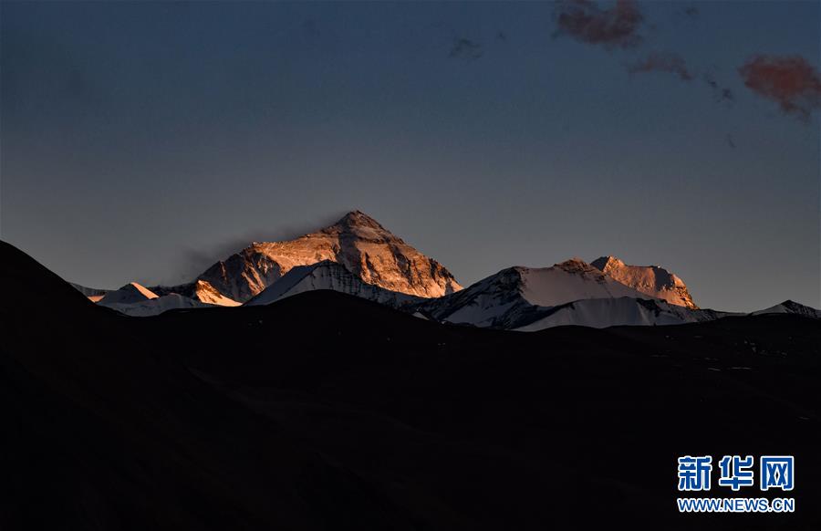 這是4月22日拍攝的夕陽下的珠峰。世界第一高峰珠穆朗瑪峰終年積雪,頂峰云霧繚繞,美不勝收。新華社記者晉美多吉攝