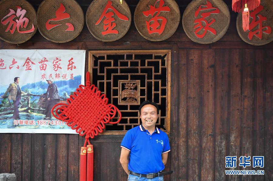 這是施六金在他的農(nóng)家樂前留影(4月25日攝)。1973年出生于十八洞村的施六金,由于父親患病很早就放棄學(xué)業(yè)和母親扛起了家庭的重?fù)?dān)。為了生活,他還曾遠(yuǎn)去東南亞打工。2015年,看到家鄉(xiāng)的變化,施六金回到村里開起了農(nóng)家樂,年度家庭人均純收入也從2014年的1715元增長到了2019年的35696元。2018年,施六金與心愛的人組建了家庭。今年初,施六金與愛人迎來了一個(gè)大胖小子?!白鋈俗鍪乱没貓?bào)和感恩?!笔┝鸾o剛出生的兒子取名施澤恩。新華社記者薛宇舸攝