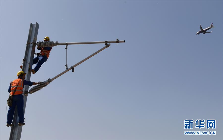 5月10日,中鐵電氣化局工程人員在鄭州新鄭機場至鄭州南站城際鐵路工地施工。新華社記者郝源攝