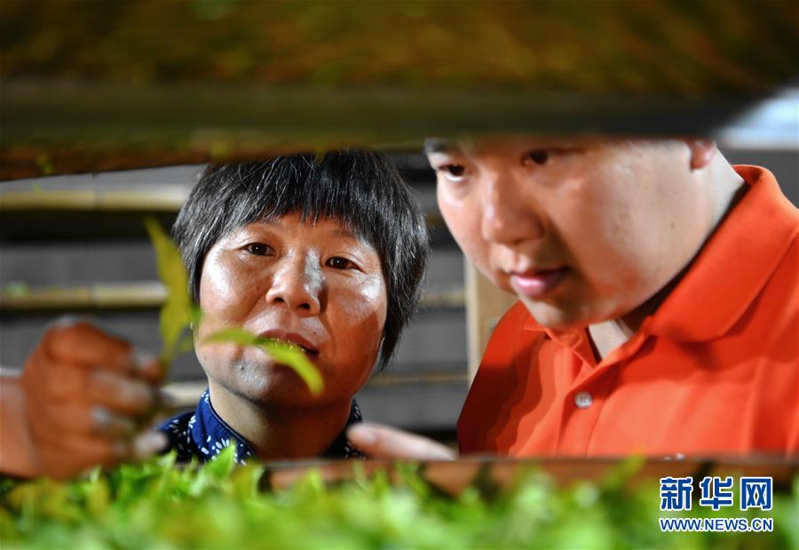 方舟跟著母親游玉瓊(左)學(xué)習(xí)手工制作武夷巖茶(5月10日攝)。新華社記者魏培全攝