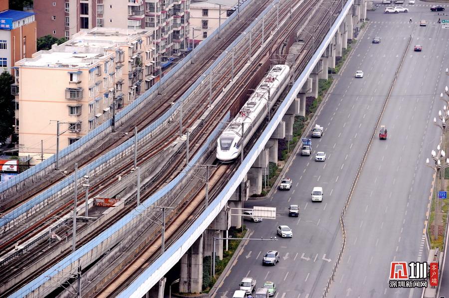 2020年5月11日,四川省成都市,犀浦站是全國首個鐵路與地鐵換乘車站。圖為動車、地鐵同時運行在線路上。